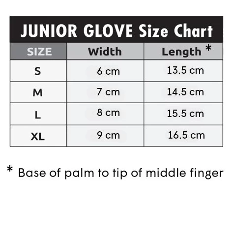 Gloves are JUNIOR sized, do not order if you are fully grown human, they will not fit you! Jnr XL is around the same as XXS adults