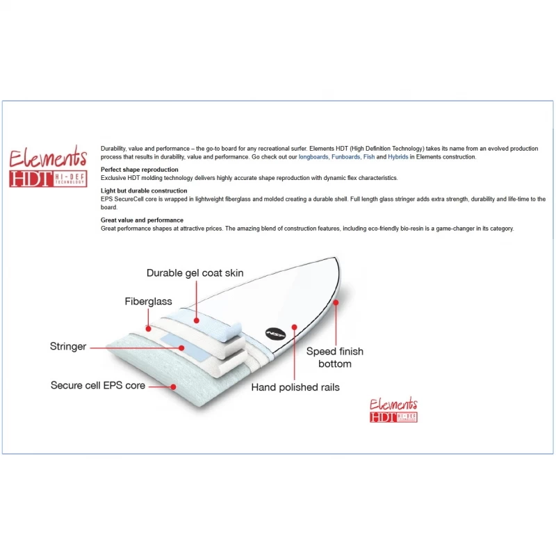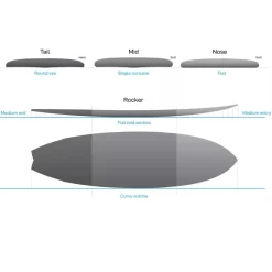 * Wide nose pumps volume under riders chest adding flotation for paddling power, stability and easy entry into the smallest waves with quick acceleration.