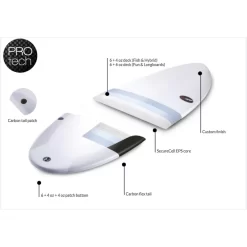 * Domed deck profile allows a forgiving but sensitive rail feel while the rounded pintail is pulled in adding control in bottom turns and cutbacks.
