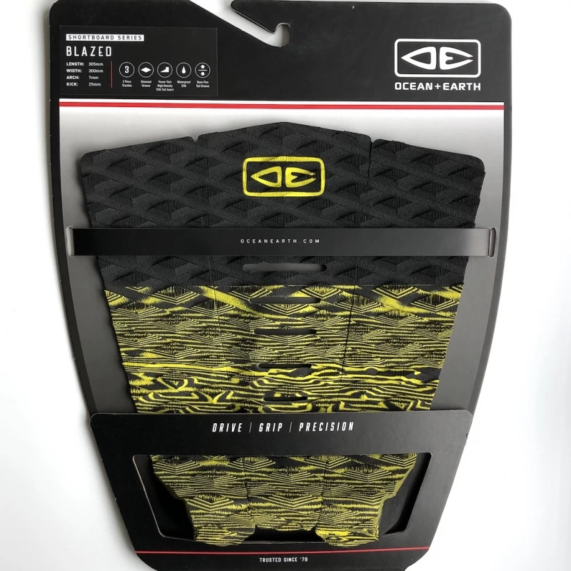 The Ocean and Earth Blazed 3 piece Surfboard Tail Pad is a modern black and lime yellow coloured pad with lots of technical features for progressive surfing. Features: