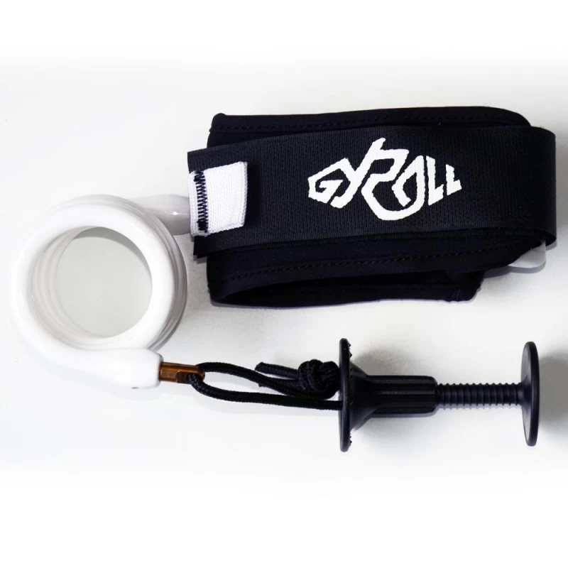This is the new Gyroll Variable arm strap. This revolutionary design gives you a perfect fitting leash if your destination is the tropics in a rashie, or in a thick winter wetsuit. The Variables strap will adapt to fit equally well. Combined with the original Gyroll coil and it’s still the most compact, functional arm leash on the market. The unique compact spiral design keeps the Gyroll totally out of the way while riding and paddling. Constructed from the finest parts and materials, Gyroll’s cord is made of a solid one-piece material with no plastic joints or seams to break. No other leash on the market offers the same level of comfort quality, design, construction, durability & functionality.